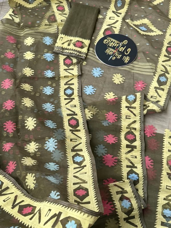 Greenish Grey With Red Green Yellow Halfsilk Jamdani