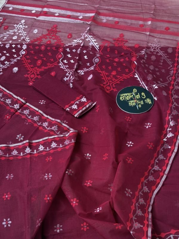 Dark Maroon Cotton Jamdani