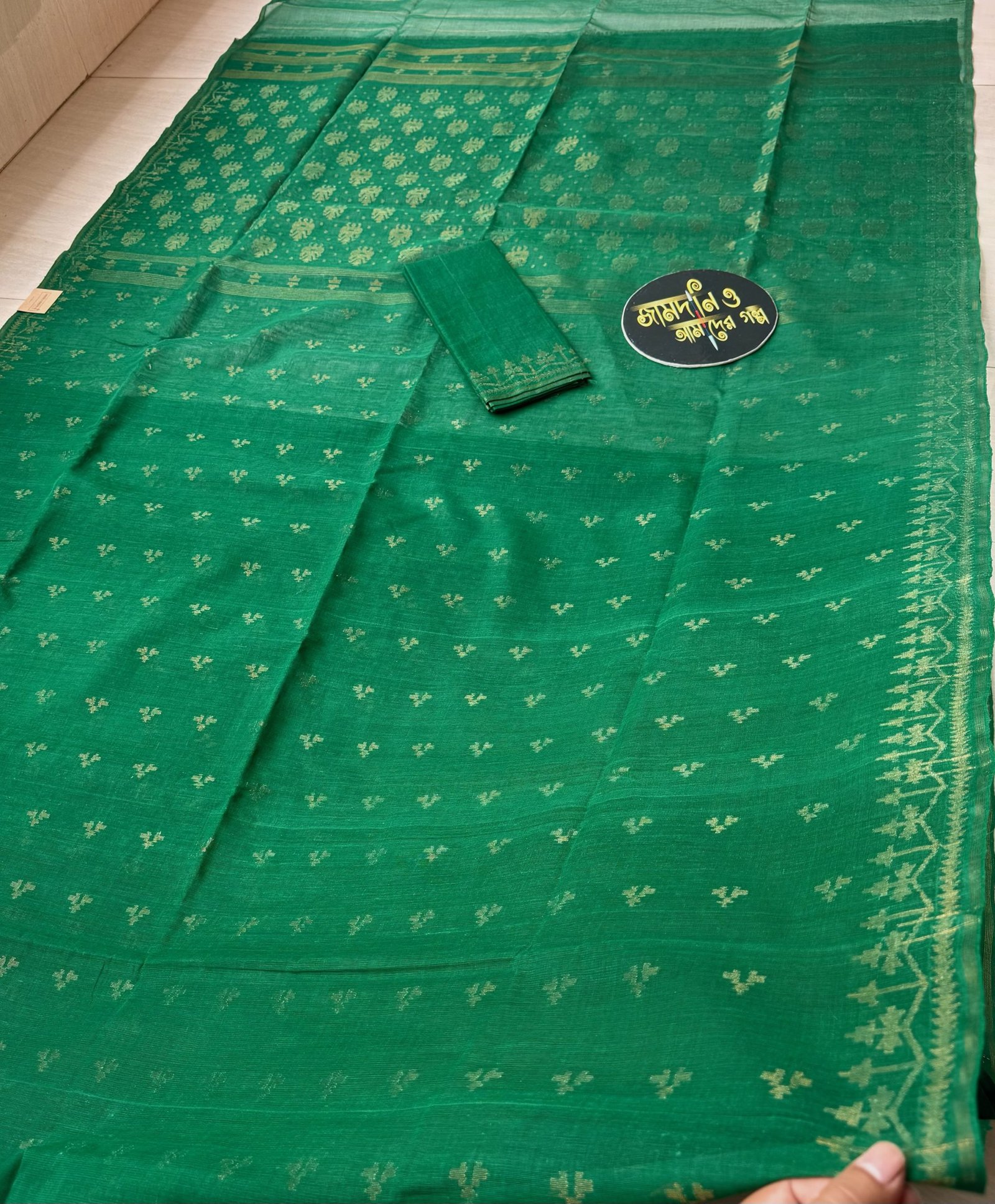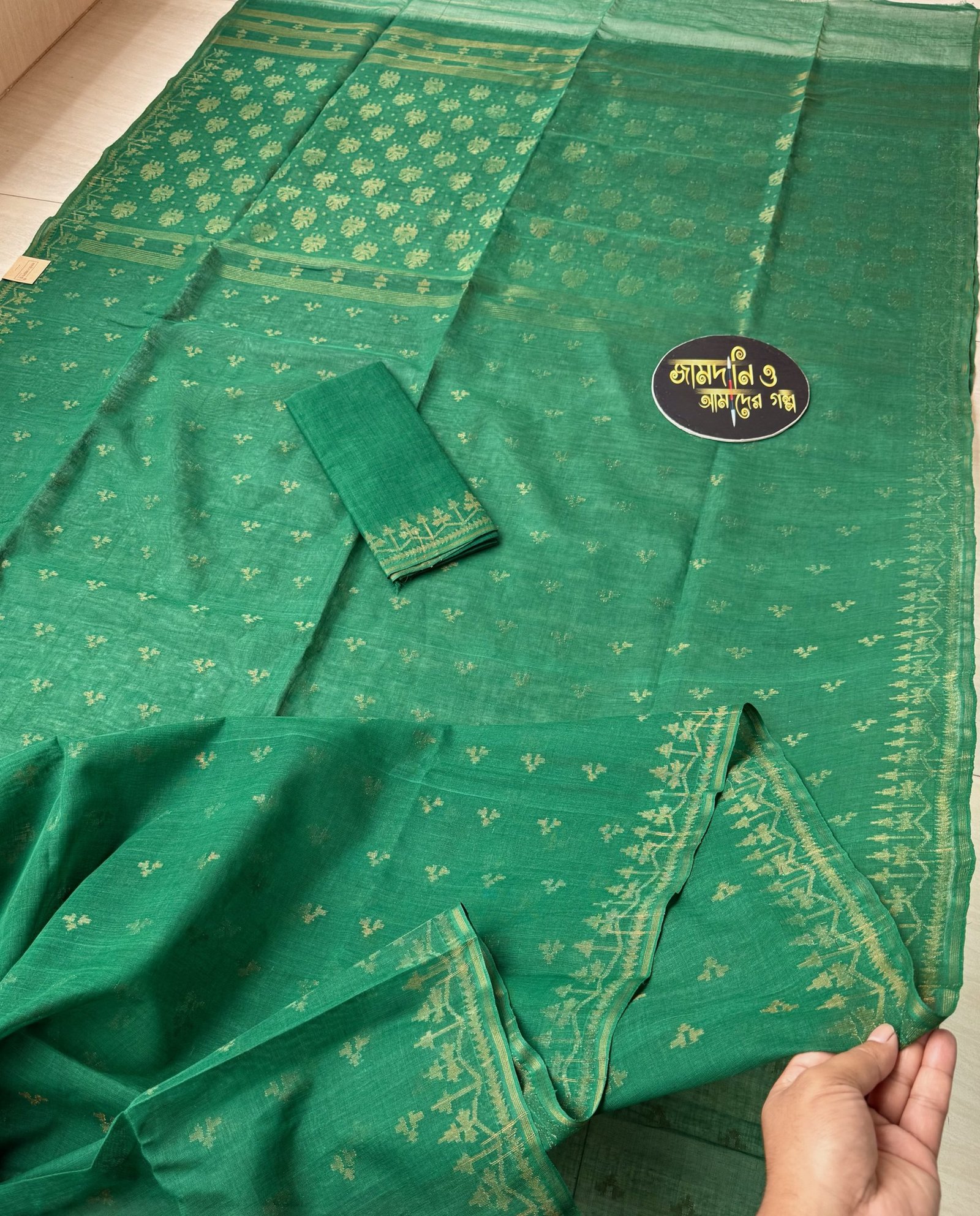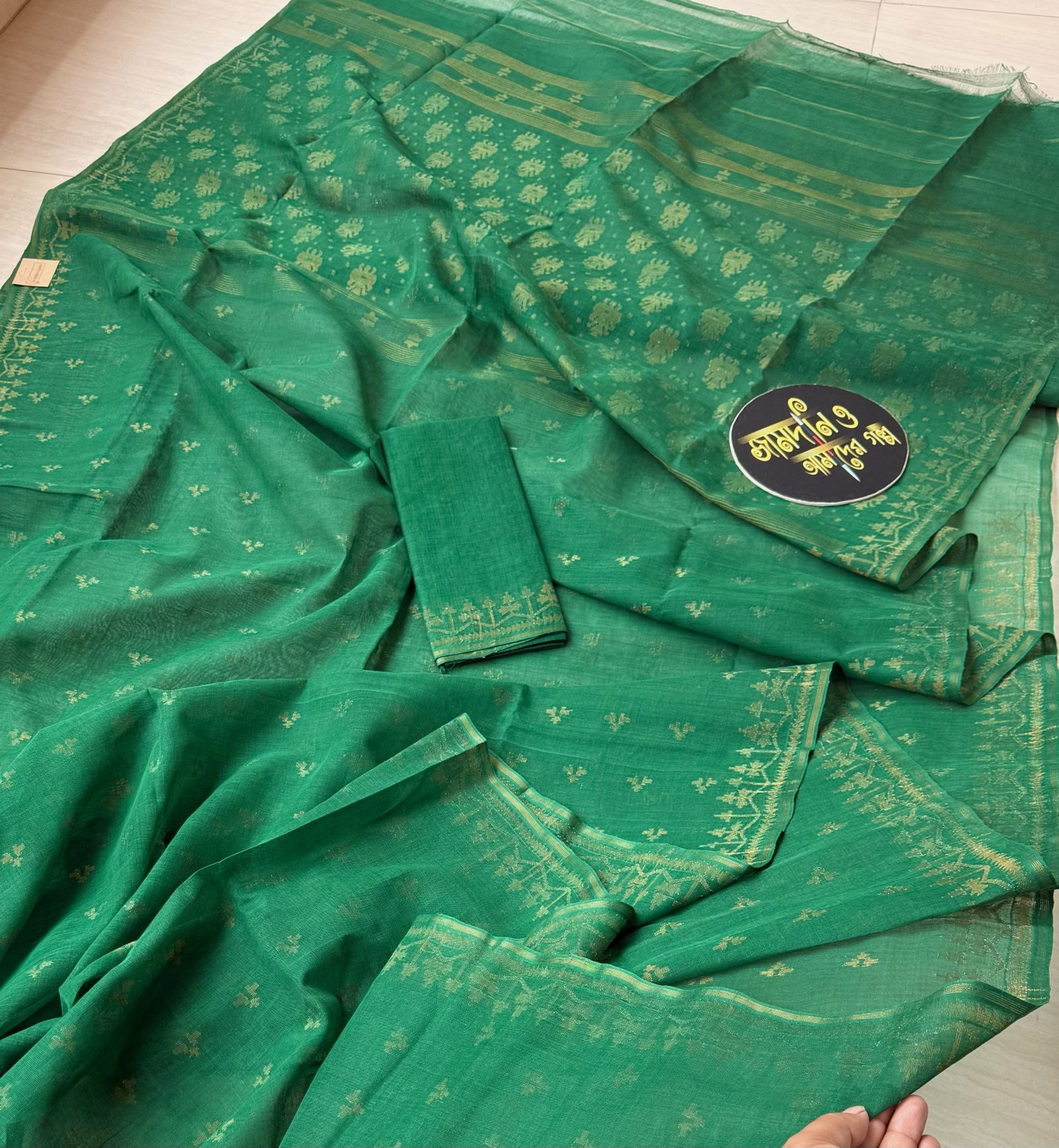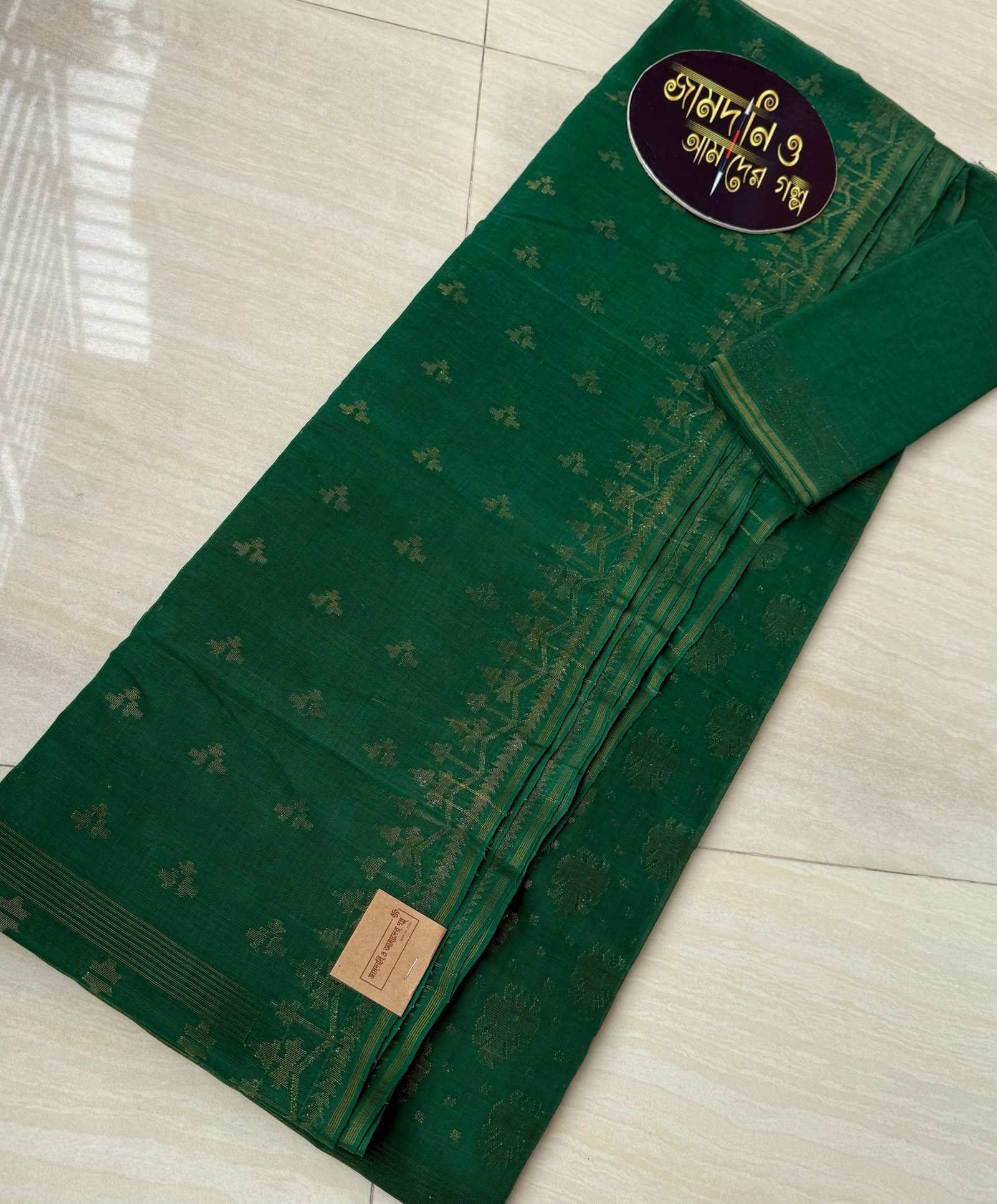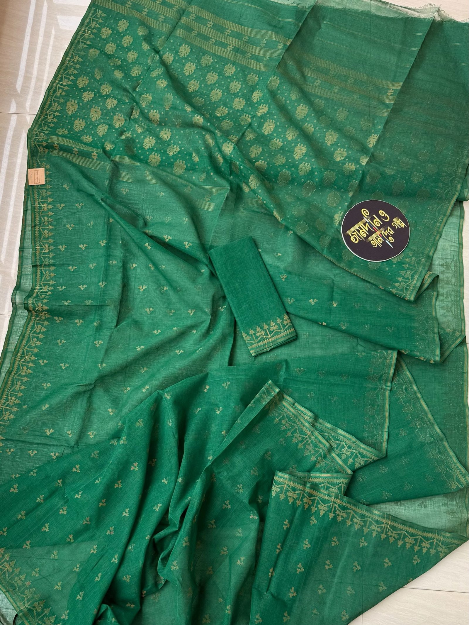 Color: Deep green with matte copper jorl cotton jamdani.