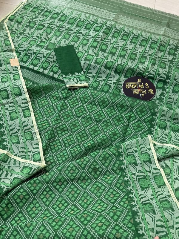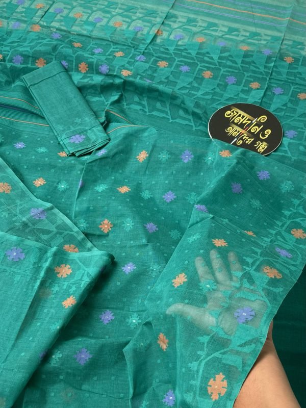 Teal Green Cotton Jamdani