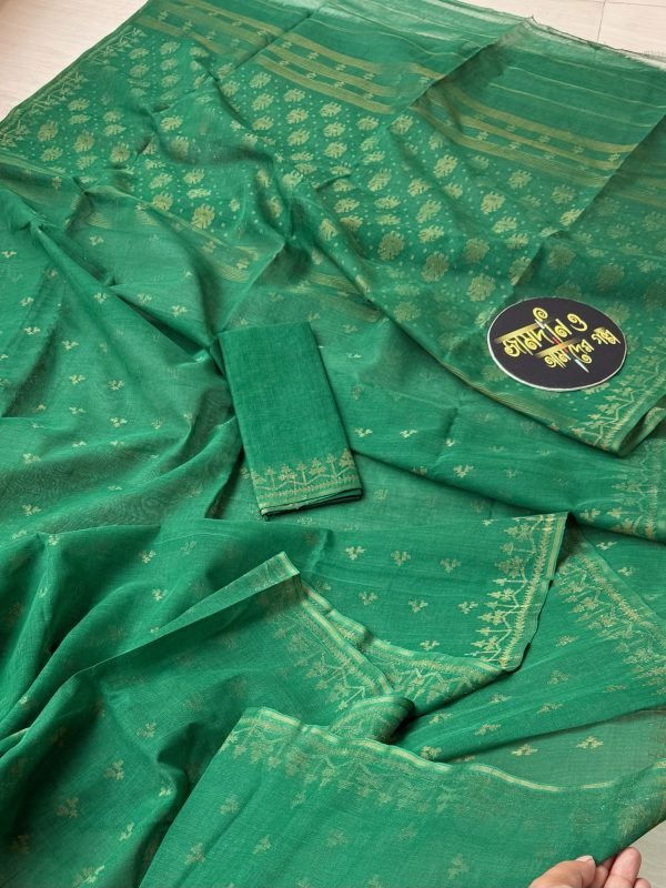 Green With Matte Copper Jori Cotton Jamdani